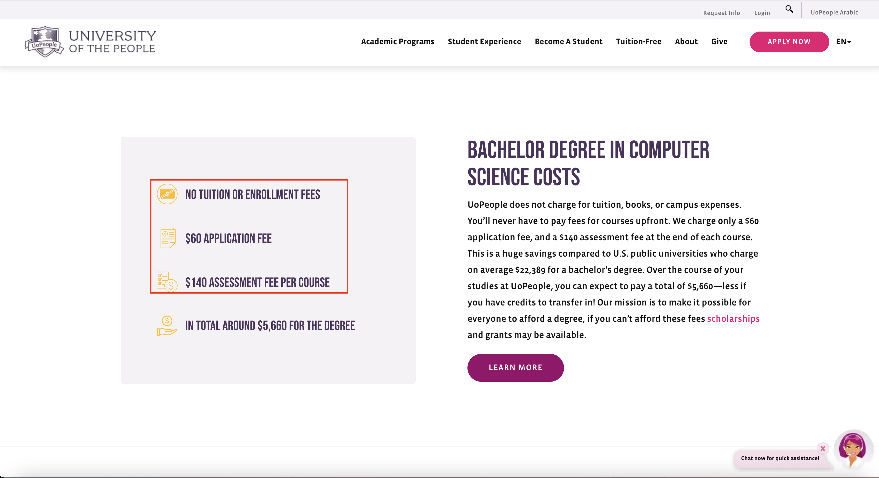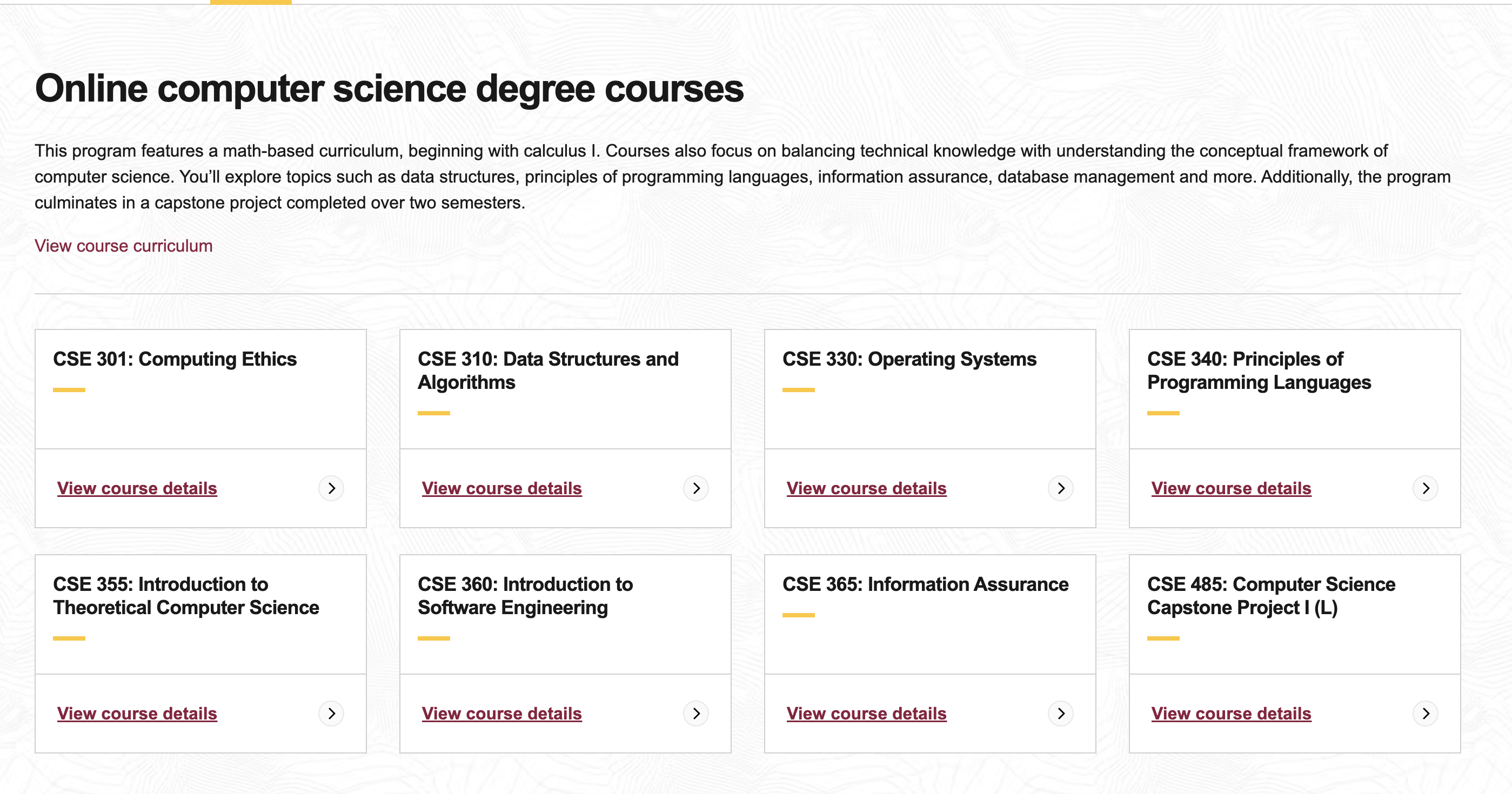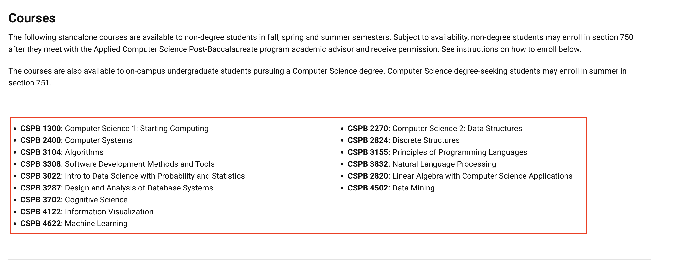 They offer Computer Systems, Algorithms, Machine Learning, Software Development Methods and Tools, Computer Science 2: Data Structures, Discrete Structures, and Principles of Programming Languages. They also have in-person courses and offer a second bachelor's degree — students already in the US can consider attending in person.