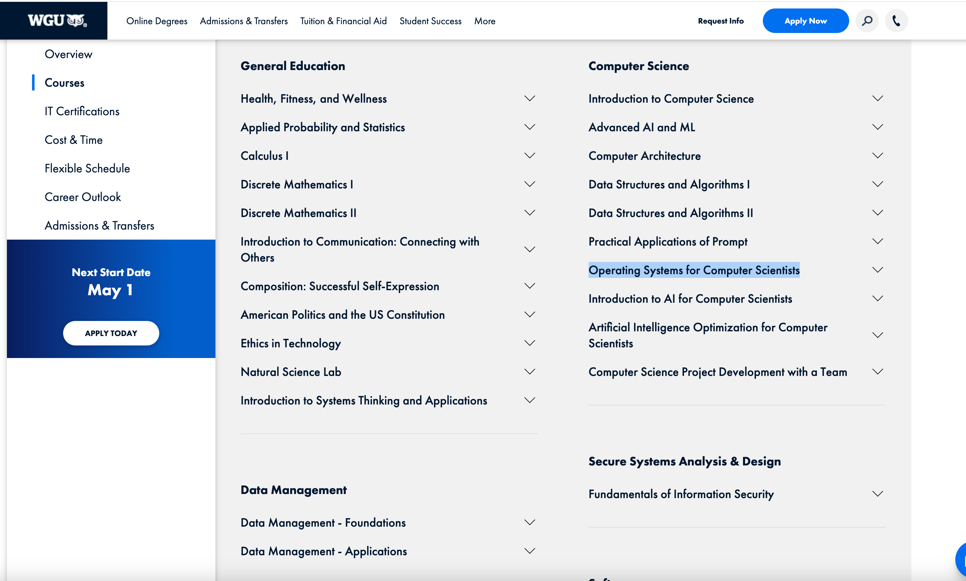 WGU is also a great option with very practical courses, such as Web Development Foundations, Linux Foundations, Java Frameworks, Data Structures and Algorithms I, Software Engineering, Network and Security - Foundations, and Operating Systems for Computer Scientists. Also recommended.